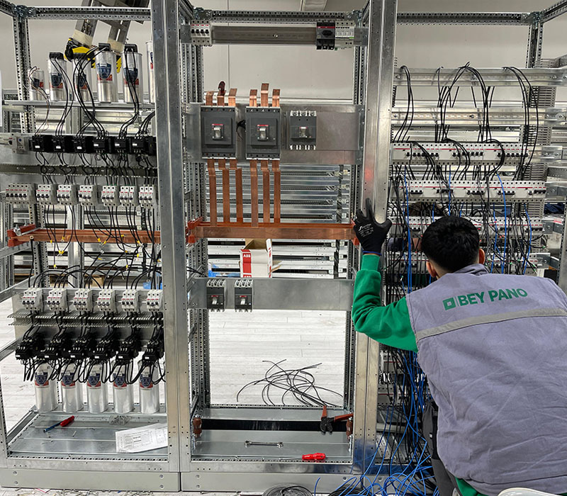 Üretim sürecimiz sac hammadde ile başlar; kesim, büküm, kaynak ve boyama gibi tüm süreçler kendi bünyemizde gerçekleştirilir. Bu da ürün kalitesinde tam kontrol ve hızlı teslimat demektir. Tüm panolarımız tip testlidir. Modüler panolarımız IP55 sertifikalıdır; kaynaklı panolarda ise IP66 seviyesine kadar üretim gerçekleştirebiliyoruz.